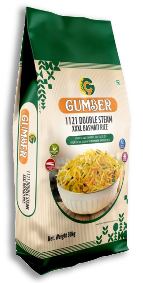 GUMBER BASMATI RICE is a perfect combination of nature's gift manufactured to perfection, with an aromatic fusion like no other. We use our experience & expertise to bring perfection in every Gumber pack. The most premium quality Basmati rice being uniformly packed in each bag ensures a standardized product. Each bag offers the same exotic flavor and richer & nuttier taste to make every meal delicious. It is excellent in any savory rice dish & is perfect for countless rice recipes across the globe making it the most sociable rice. Along with the lovely taste, it is full of genuine goodness because of nutritional factors like Gluten free, Cholesterol free, & low to medium level of Glycemic Index etc. The distinct aroma is enhanced by the fact that we age our Basmati rice for years & we make sure that only the finest Basmati makes it into the Gumberl bags.