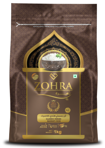 Zohra Vintage brings a true quality Basmati Rice as a rare gift of the nature from the Himalayan terrain of the earth, wind and water. Carefully handpicked crop passes through stringent quality and hygienic scale of processing and produces basmati rice of its class with extra-long, extra-smooth and extra-fine grains that on cooking elongates more than double the uncooked grain size without sticking to each other.